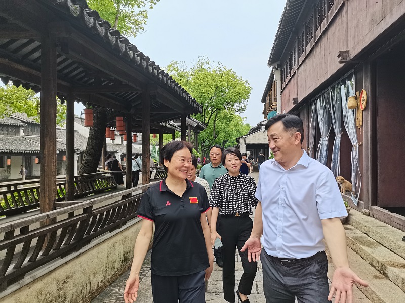 2023年6月19日,苏州文促会理事长杜国玲一行调研考察本会常务理事单位--爱慕股份有限公司和吴江黎里古镇文化传承等情况。吴江区委书记李铭、区人大常委会主任徐晓枫、副主任李卫珍等陪同参观调研考察。